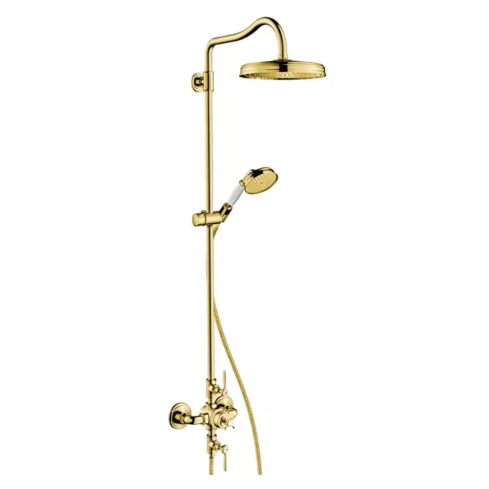Axor Montreux Душевая стойка с термостатом и верхним душем d=240мм, цвет: полированное золото