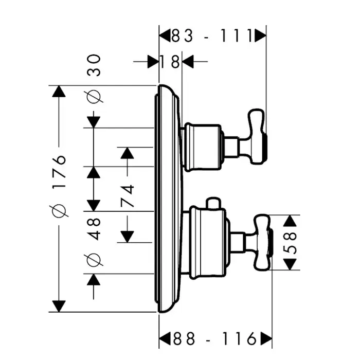 Axor Montreux Смеситель для душа с термостатом и запорно переключающим вентелем, внешняя часть, цвет: хром
