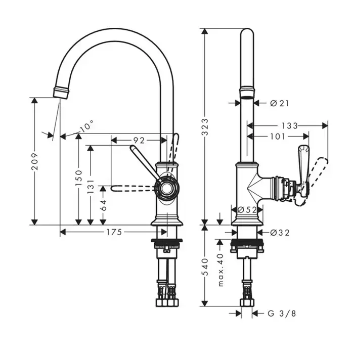 Axor Montreux Смеситель для раковины, на 1 отв., излив 175мм, без донного клапана, цвет: полированное золото