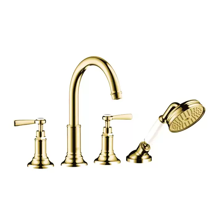Axor Montreux Смеситель для ванны, монтаж на плитку, на 4 отв, с ручным душем излив 196мм, внешняя часть, цвет: полированное золото