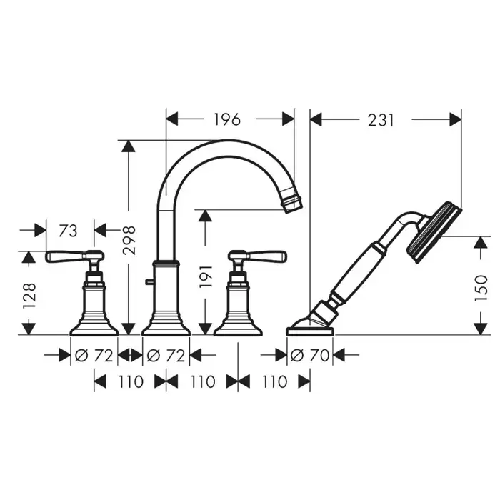 Axor Montreux, Смеситель для ванны, на 4 отверстия, монтаж на плитку, с рычаговыми рукоятками, внешняя часть, цвет: никель шлифованный