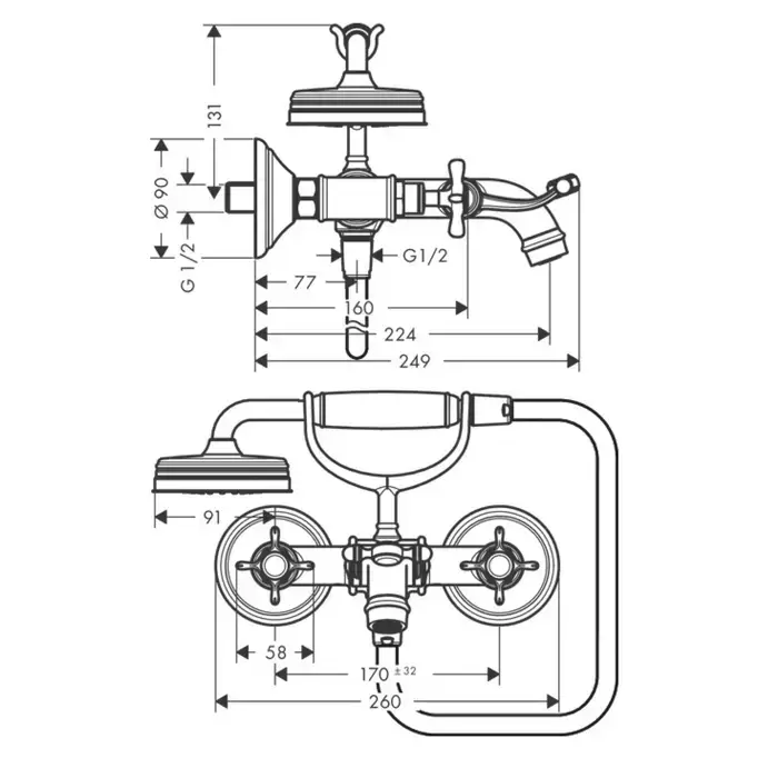 Axor Montreux Смеситель для ванны, настенный с ручным душем, цвет: никель шлифованный