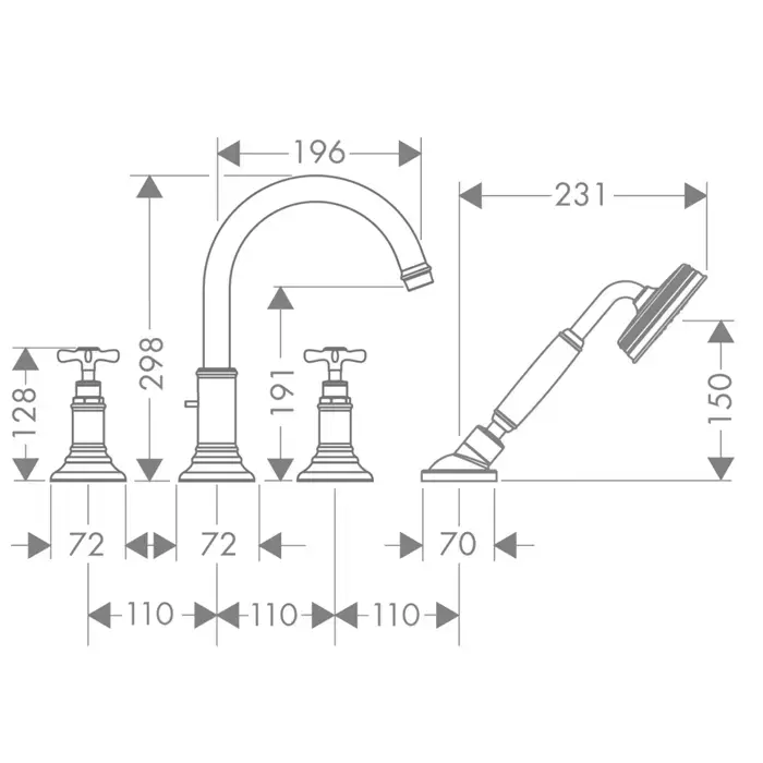 Axor Montreux Смеситель на край ванны, на 4 отв, внешняя часть, цвет: никель шлифованный