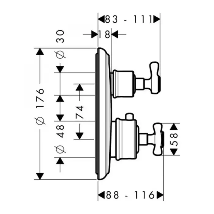 Axor Montreux Термостат Ecostat E, встраиваемый, с 2 ручками, внешняя часть, цвет: никель шлифованный
