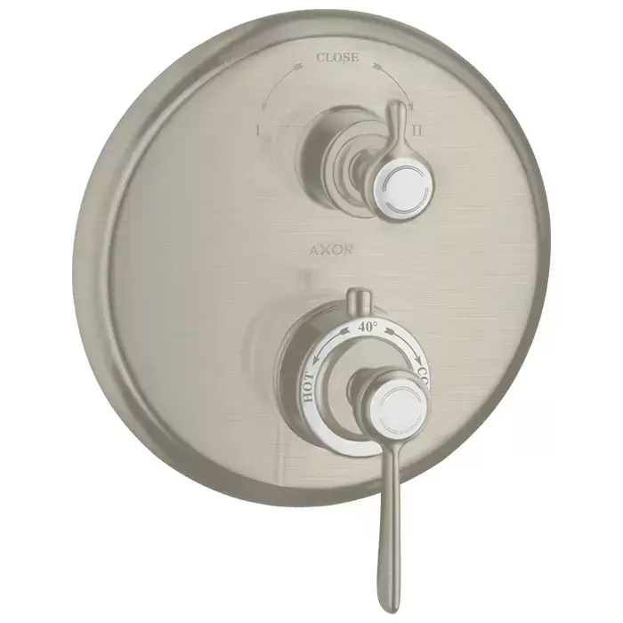 Axor Montreux, Термостат с запорным/ переключающим вентилем, с рычаговой рукояткой, СМ, внешняя часть, цвет: никель шлифованный