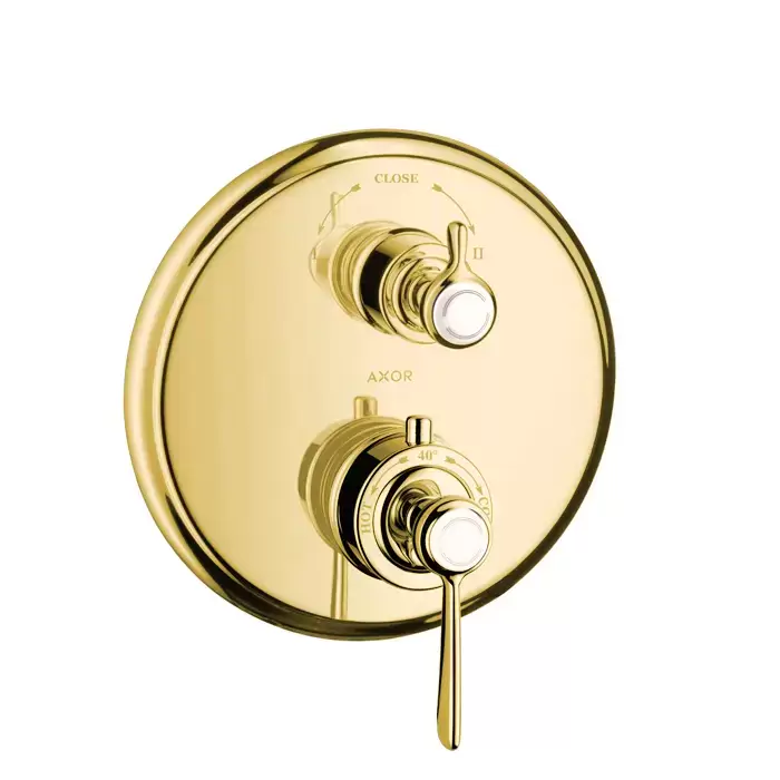 Axor Montreux Термостат с запорным/переключающим вентилем, СМ, 2 потребителя (рычажные рук.), внешняя часть, цвет: полированное золото