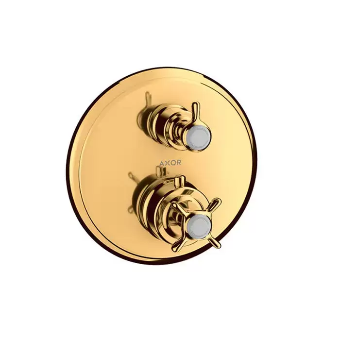 Axor Montreux Термостат с запорным/переключающим вентилем, СМ, 2 потребителя, внешняя часть, цвет: полированное золото
