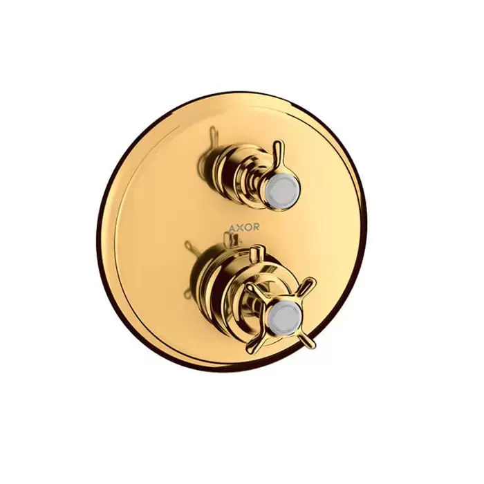 Axor Montreux Термостат с запорным вентилем, СМ, 1 потебитель, внешняя часть, цвет: полированное золото