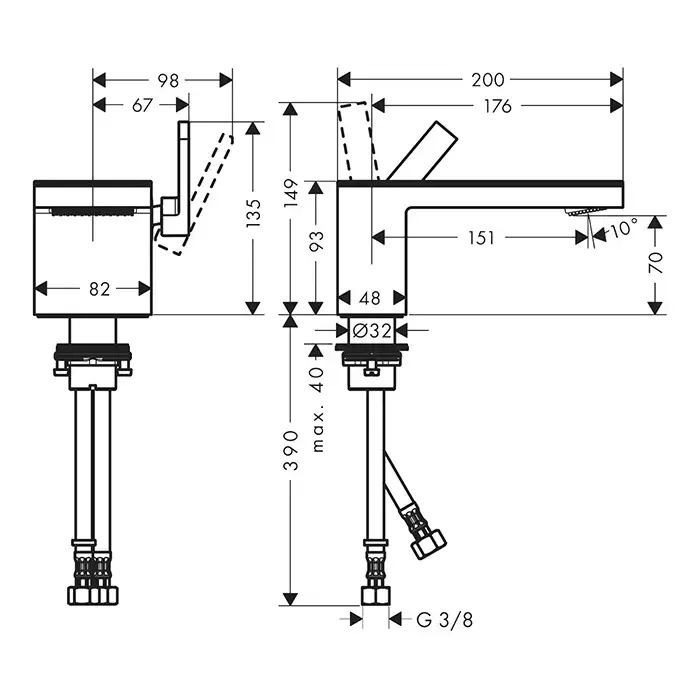 Axor MyEdition Смеситель для раковины 70, на 1 отв., излив 200мм, с донным клапаном, цвет: хром/черное стекло