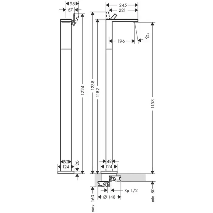 Axor MyEdition Смеситель для раковины напольный, на 1 отв., излив 245мм, с донным клапаном, внешняя часть, цвет: хром/черное стекло