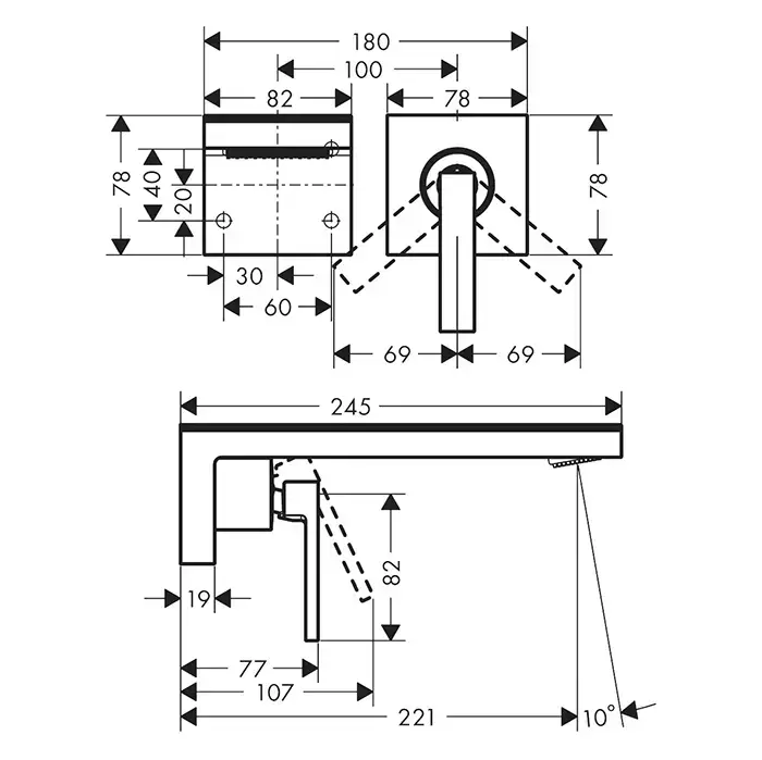 Axor MyEdition Смеситель для раковины, встраиваемый, излив: 22.1см., без панели, без встраиваемой части, цвет: шлифованный никель