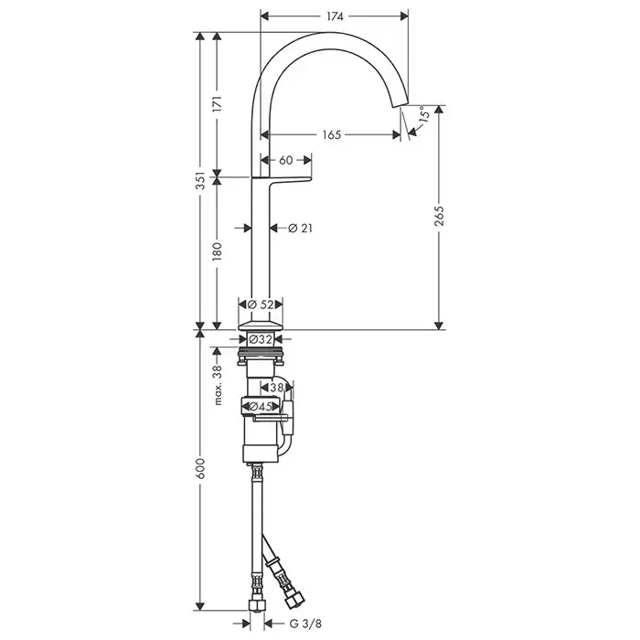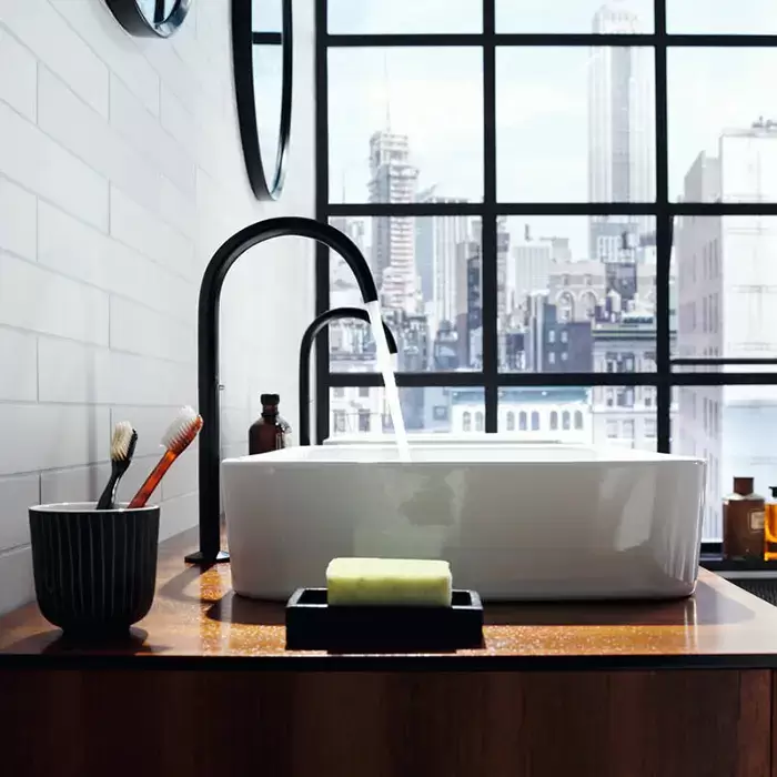 Axor One Смеситель для раковины, 1 отв., излив h260мм, Select, со сливом push-open, цвет: черный матовый