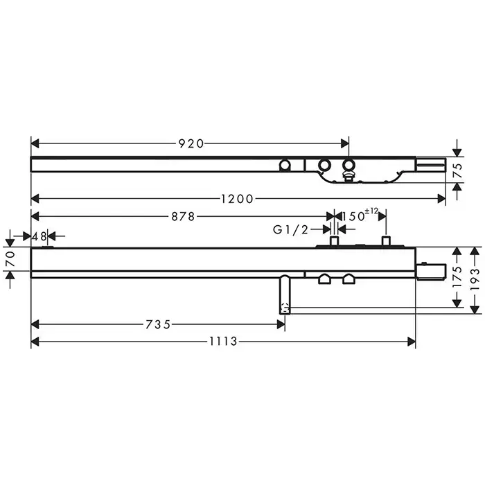 Axor Showers Настенный термостат для ванны, с полкой 1113х70мм, 2 потреб., цвет: хром