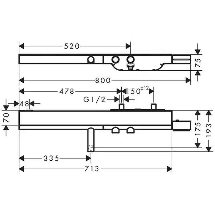 Axor Showers Настенный термостат для ванны, с полкой 713х70мм, 2 потреб., цвет: шлифованный никель