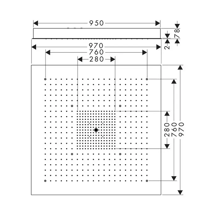 Axor ShowerSelect Верхний душ, 97х97см., встраиваемый в потолок, цвет: сталь