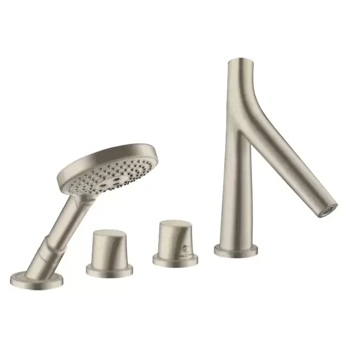 Axor Starck Organic Смеситель на борт ванны, на 4 отв., с ручным душем, цвет: шлифованный никель