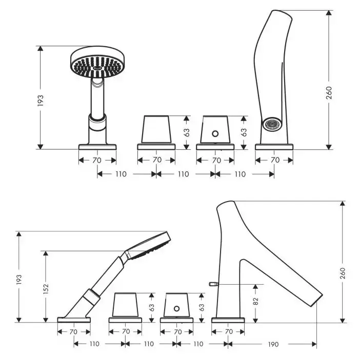 Axor Starck Organic Термостатический смеситель для ванны, монтируемый, на 4 отв., внешняя часть, цвет: хром