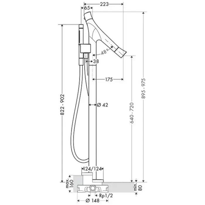 Axor Starck Organic, Термостатический смеситель напольный для ванны, внешняя часть, цвет: хром