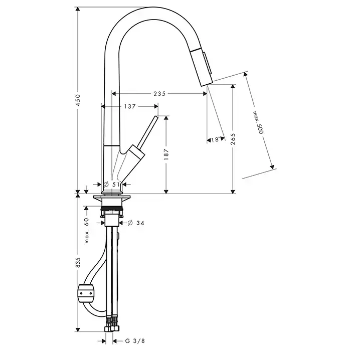 Axor Starck Смеситель для кухни, на 1 отв., с вытяжным изливом, цвет: шлифованное золото