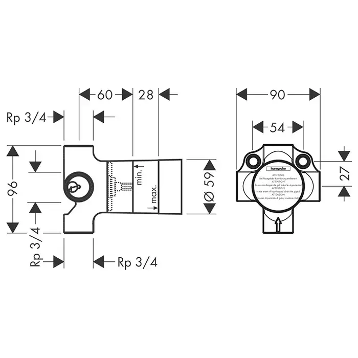 Axor Trio Запорный/переключающий вентиль, скрытый монтаж 3/4, расход воды 130 л/мин