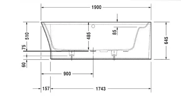 Bathtub Cape Cod Ванна угол справа 190x90см с бесшовной панелью и ножками, с одним наклоном для спины, цвет: белый