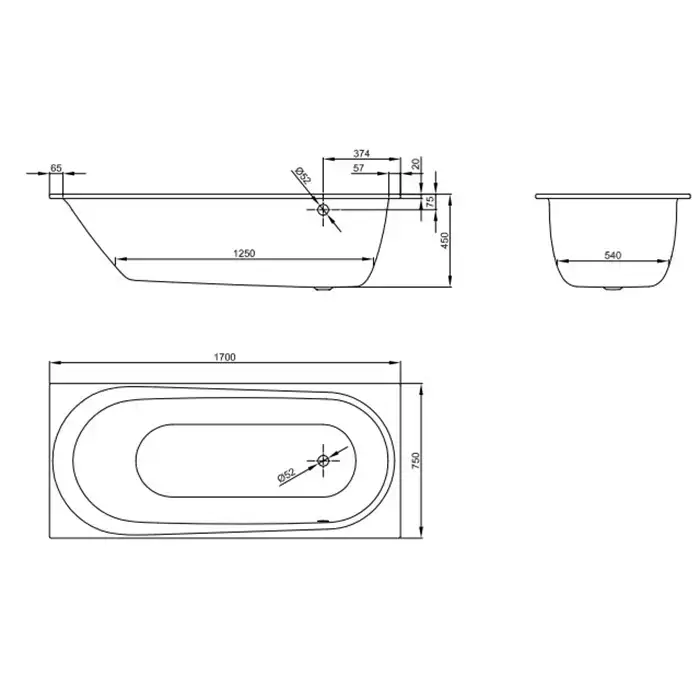 Bette Comodo Ванна 170х75х45см., с шумоизоляцией, , область ног ванны справа, перелив спереди (для удлиненного слив-перелива) встраиваемая, цвет: белый