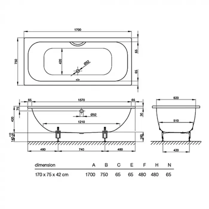 Bette Duett Ванна прямоугольная пристенная, 170х75х42см, с шумоизоляцией, BetteGlasur® Plus, цвет: белый