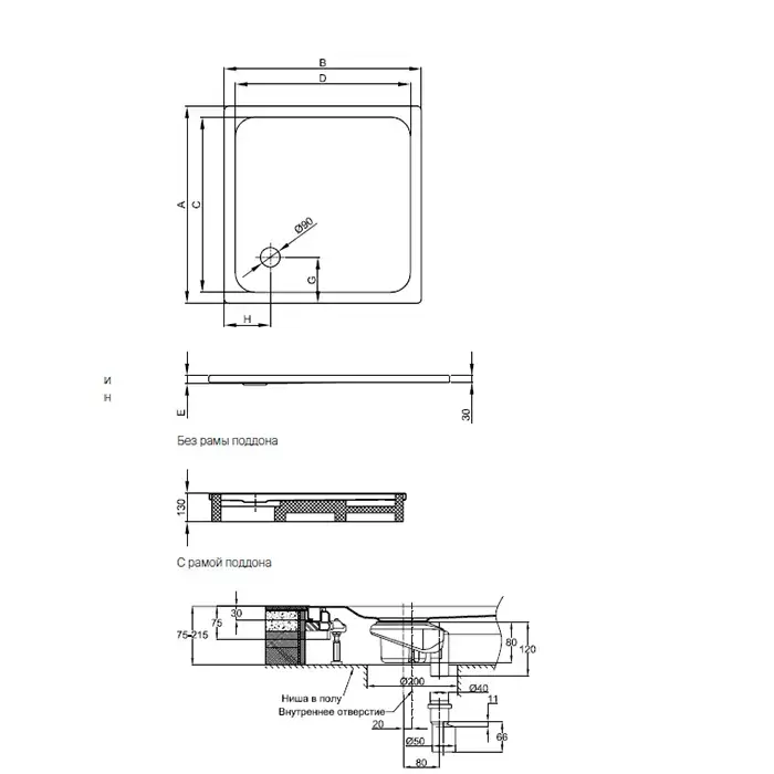 Bette Душевой поддон 80х80х2.5 см, квадратный, D9см, цвет: белый
