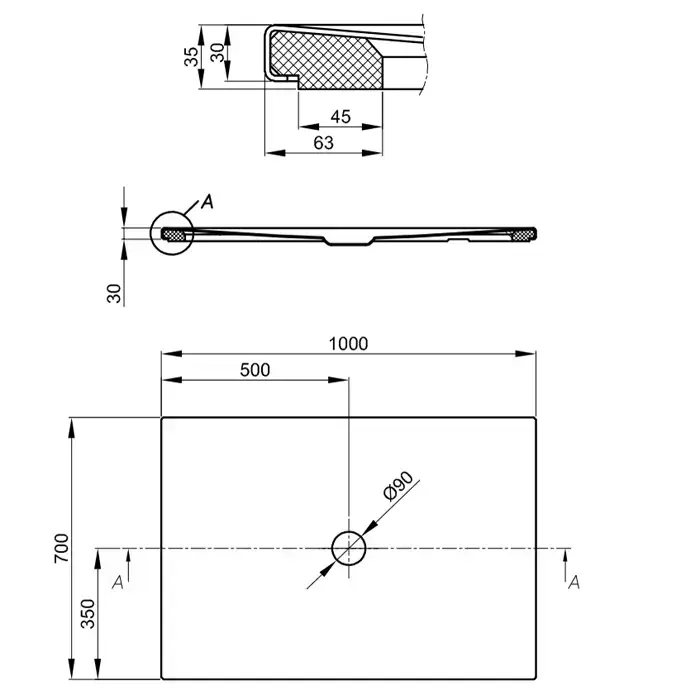 Bette Душевой поддон прямоугольный 100х70х15 h5,5см, слив D=9см, белый