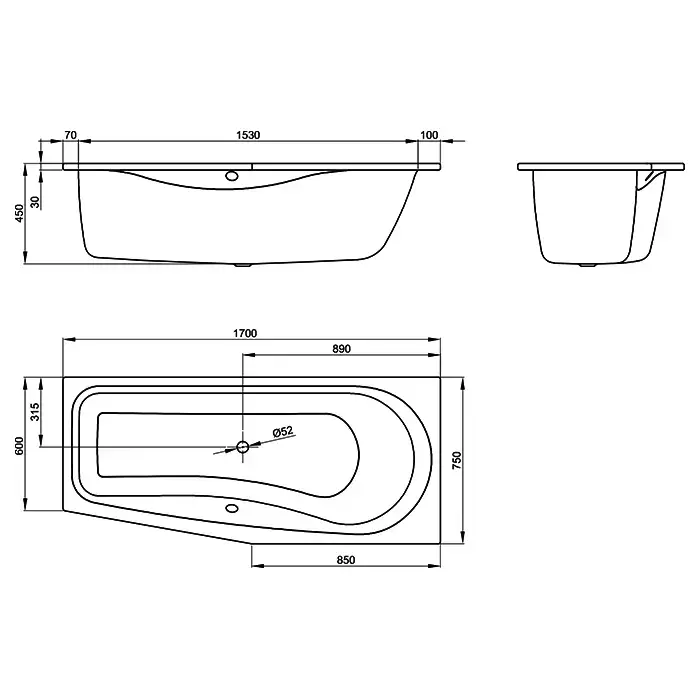 Bette Luna Ванна прямоугольная с шумоизоляцией встраиваемая, 170х75х45 см, BetteGlasur® Plus, (область ног слева) цвет: белый