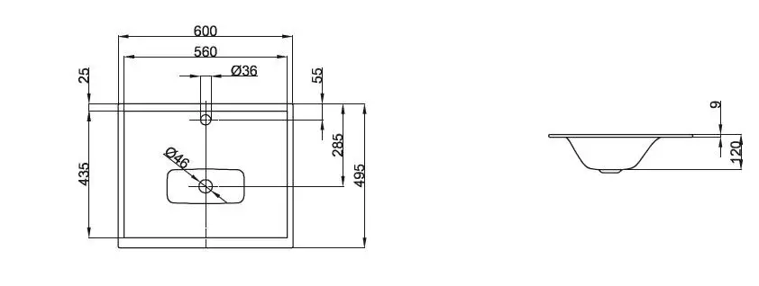 Bette Lux Раковина 60х49.5х9 см, 1 отв., сталь, цвет: белый