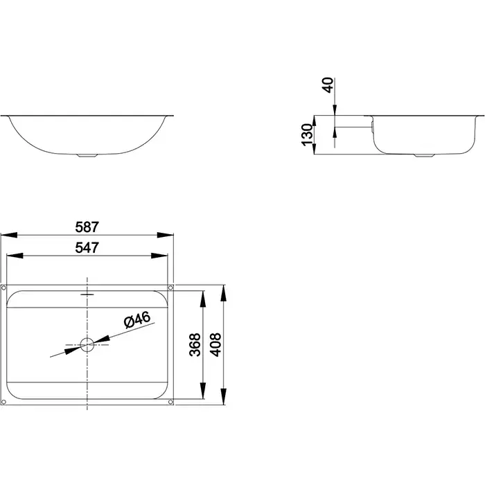 Bette One Раковина встраиваемая снизу, 58.7х40.8х13см, без отв., с шумоизоляцией, с переливом, сталь, цвет: белый
