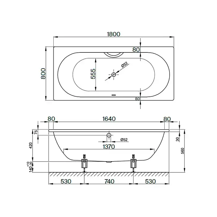 Bette Starlet Ванна 180x80см., встраиваемая, с шумоизоляцией, BetteАнтислип Sense, цвет: белый
