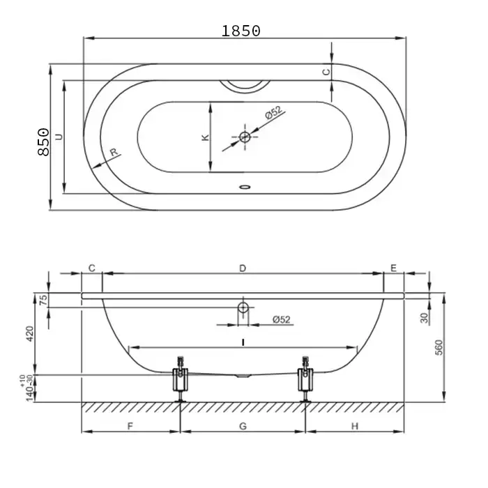 Bette Starlet Ванна с шумоизоляцией встраиваемая, 185х85х42 см, BetteGlasur® Plus, цвет: белый