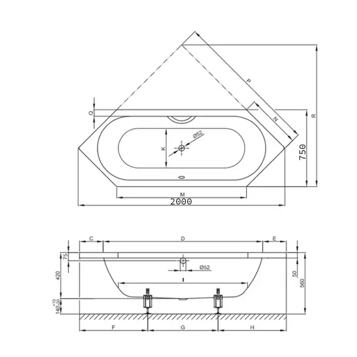 Bette Starlet Ванна шестиугольная с шумоизоляцией встраиваемая, 200х75х42см, BetteGlasur® Plus, цвет: белый
