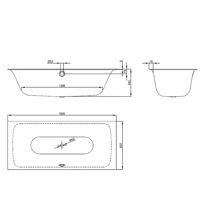 BetteLux Ванна прямоугольная с шумоизоляцией встраиваемая, 180x80x45 см, цвет: белый