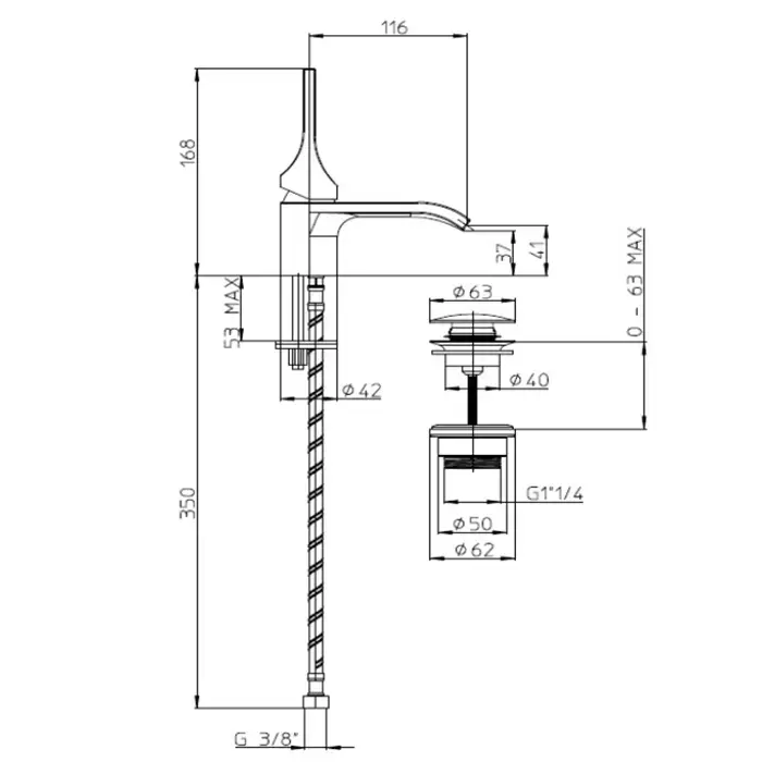 Bossini Apice Смеситель для раковины на 1 отверстие, однорычажный, с донным клапаном, цвет: черный матовый