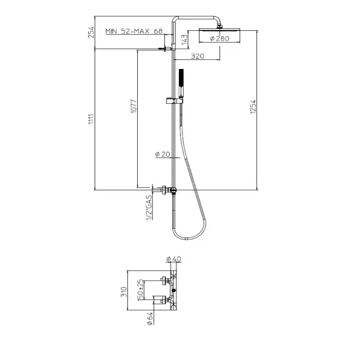 Bossini Apice Стойка для душа с термостатическим смесителем, верхним душем Ø28см., ручным душем и шлангом 150см., цвет: хром