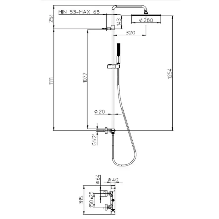 Bossini Apice Стойка для душа с термостатическим смесителем, верхним душем Ø28см., ручным душем и шлангом 150см., цвет: хром