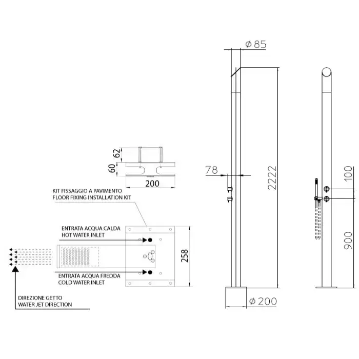 Bossini Aquabambu Душевая колонна со смесителем и ручным душем, каскад, напольная, цвет: хром