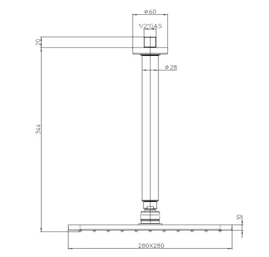 BOSSINI COSMO Верхний душ 280х280 мм., с потолочным держателем 300 мм, цвет хром