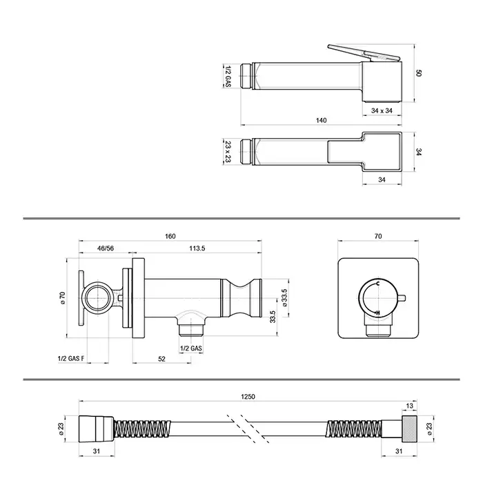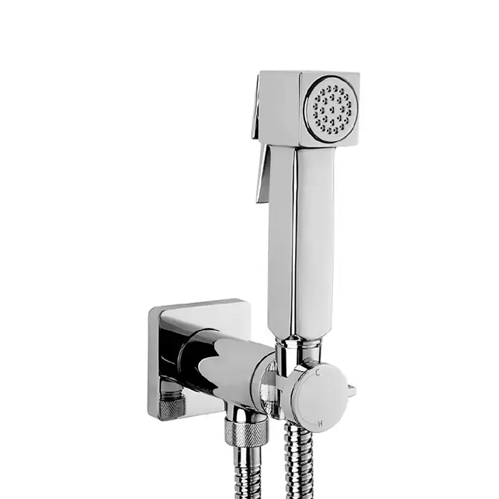 Bossini Cube Brass Гигиенический душ с прогрессивным смесителем, лейка металлическая, шланг металлический, цвет: хром