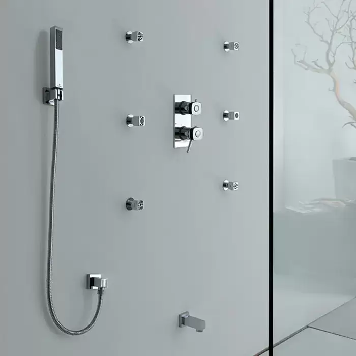 Bossini Cube Душевой гарнитур: лейка для душа с держателем и шлангом 150см., цвет: хром