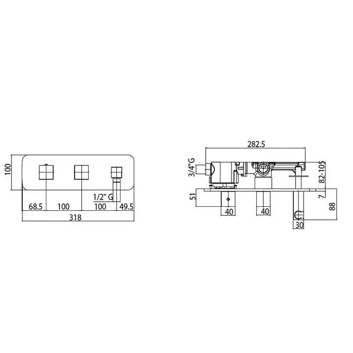 Bossini Cube Комплект:Термостат для душа, встраиваемый, с девиатором на 2 выхода, с держателем с водорозеткой, подключение на 3/4”, цвет: хром