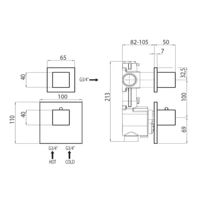Bossini Cube Смеситель для душа, встраиваемый, термостатический, с переключателем на 2 источника, цвет: хром