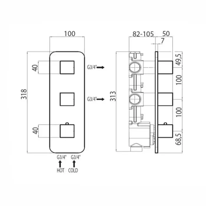 Bossini Cube Термостат для душа, встраиваемый, с девиаторм/запорным вентилем на 2 - 4 выхода, уст-ка верт/гор., цвет: хром