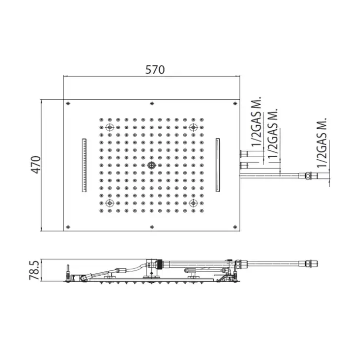 BOSSINI DREAM/3 Верхний душ 570 x 470 мм, с 4 LED RGB, 3 режима (дождь, каскад, водопад), блок питания/управления, Cromoterapia, цвет: хром