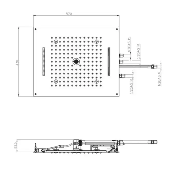 BOSSINI DREAM/4 Верхний душ 570 x 470 мм, с 4 LED RGB, 4 режима (дождь, каскад, водопад, моноструя), блок питания/управления, Cromoterapia, цвет: хром