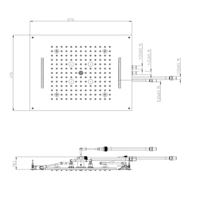 BOSSINI DREAM/4 Верхний душ 570x470 мм, с 4 LED RGB, 4 режима (дождь, каскад, водопад, туман) блок питания/управления, Cromoterapia, цвет: черный мат