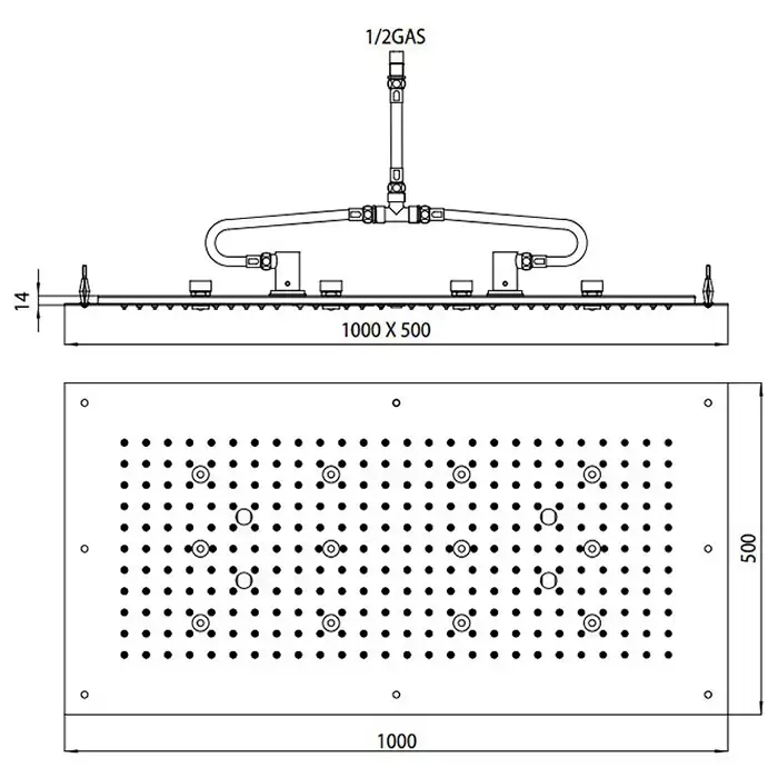BOSSINI DREAM-XL RECTANGULAR Верхний душ 1000 x 500 мм, с 12 LED (белый), блок питания/управления, цвет: хром